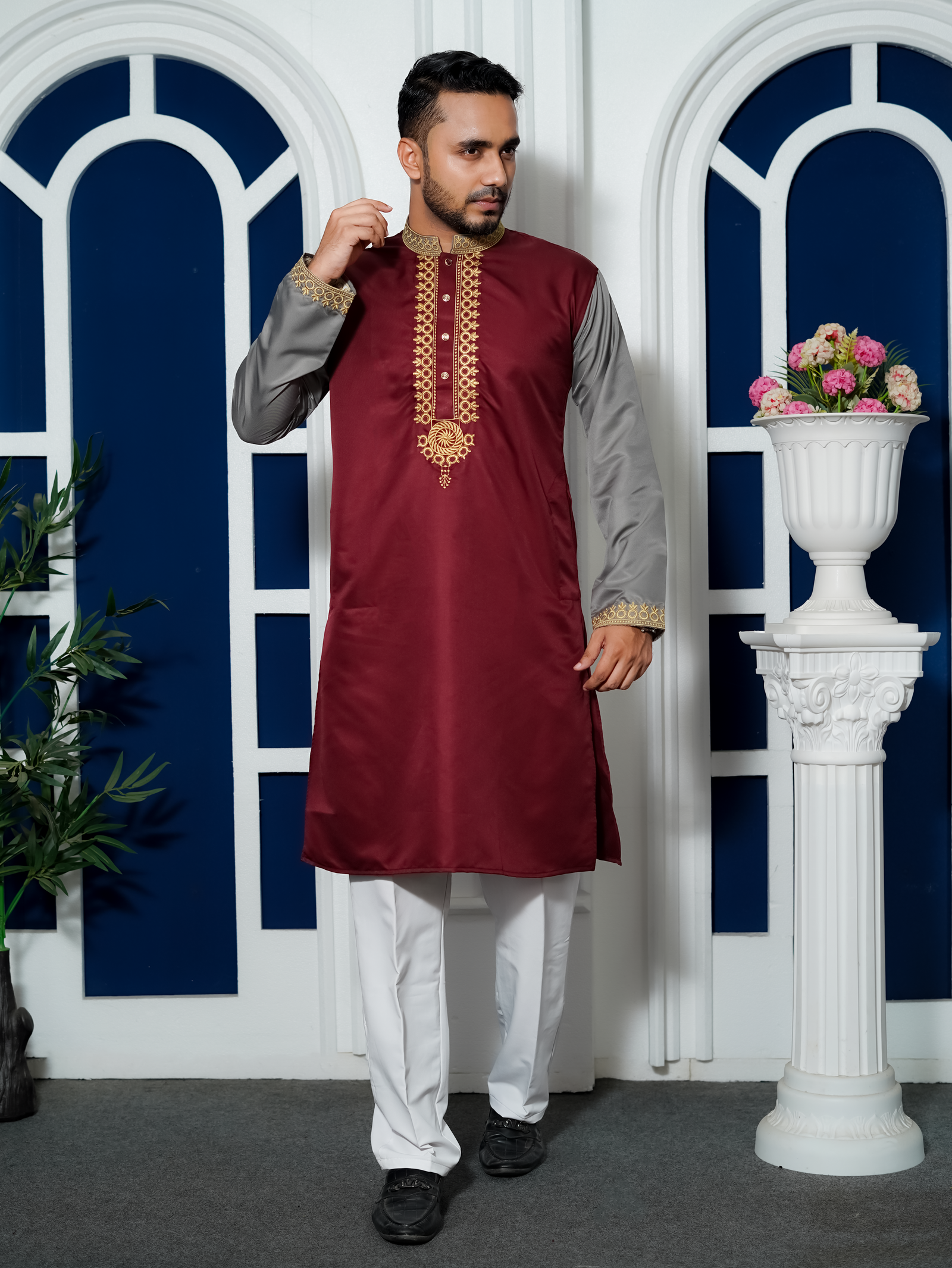 Deep Maroon Embroidery Panjabi/ Code 264